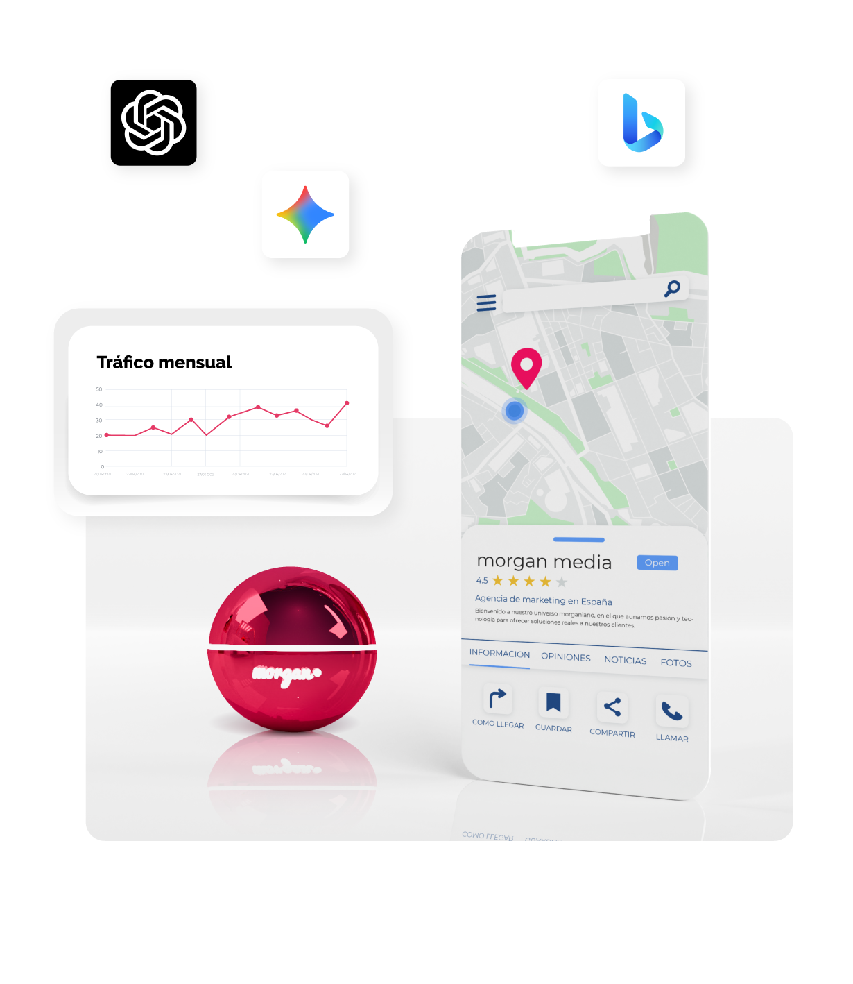 Pensado para negocios locales que quieren reforzar la visibilidad de su marca, potenciar la reputación digital, asegurando que la primera impresión en Google y otros motores inteligentes sea positiva o complementar sus campañas de Google Ads, su estrategia en Redes Sociales o sus acciones de Marketing reputacional.